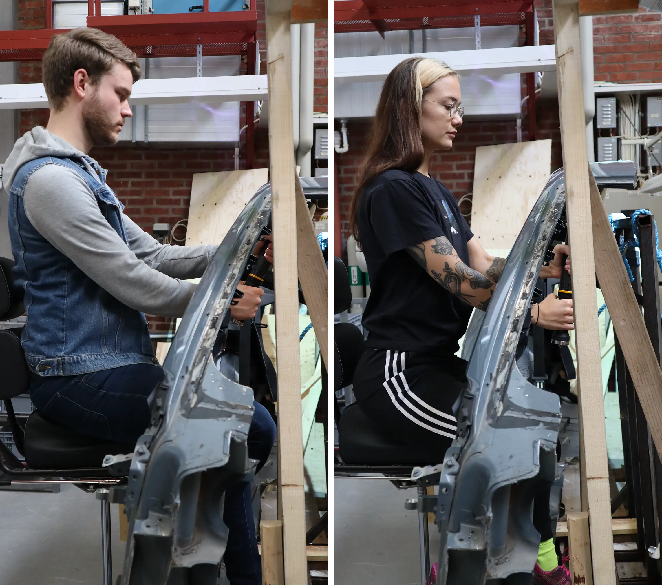 Prototype testing confirmed the ergonomics were effective, with an opportunity for future improvement by allowing the seat to slide horizontally for even closer access to the car body.
