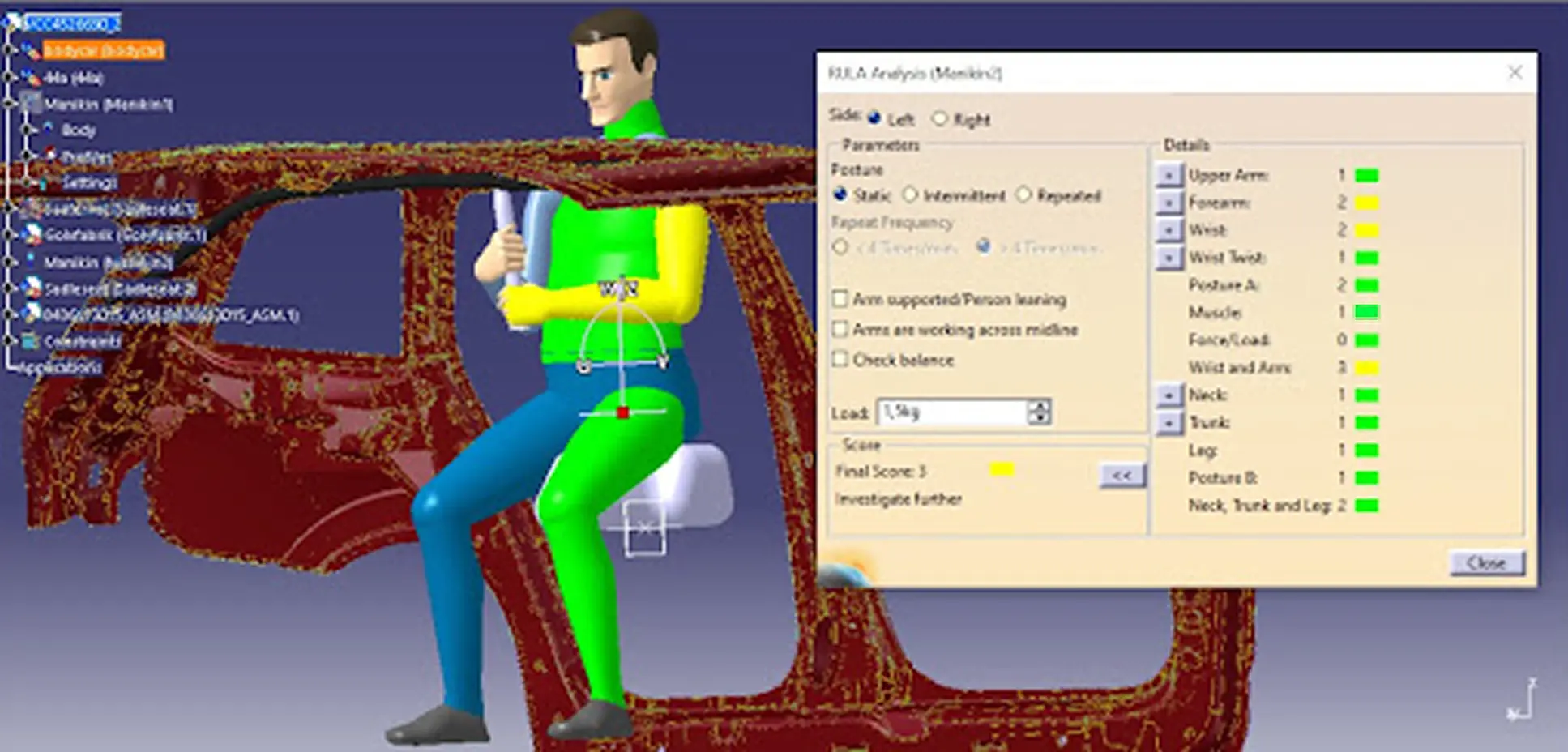- Identified and mapped high-risk postures through RULA evaluation, user observations, and full-scale motion analysis.
