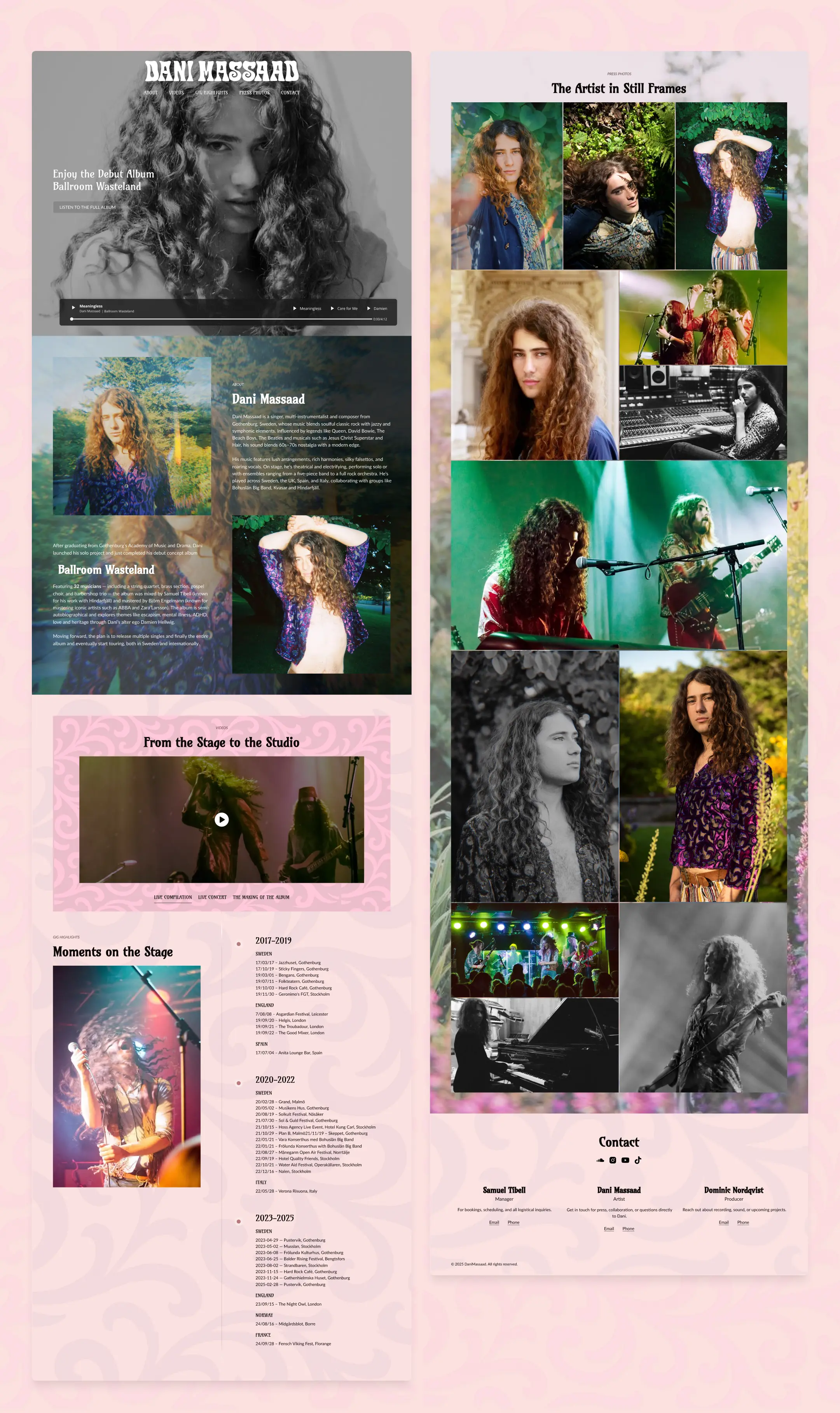 Dani Massaad is a talented music artist releasing his debut album. He needed a simple but personal branding and website to share with labels and collaborators. And Baby, I delivered.