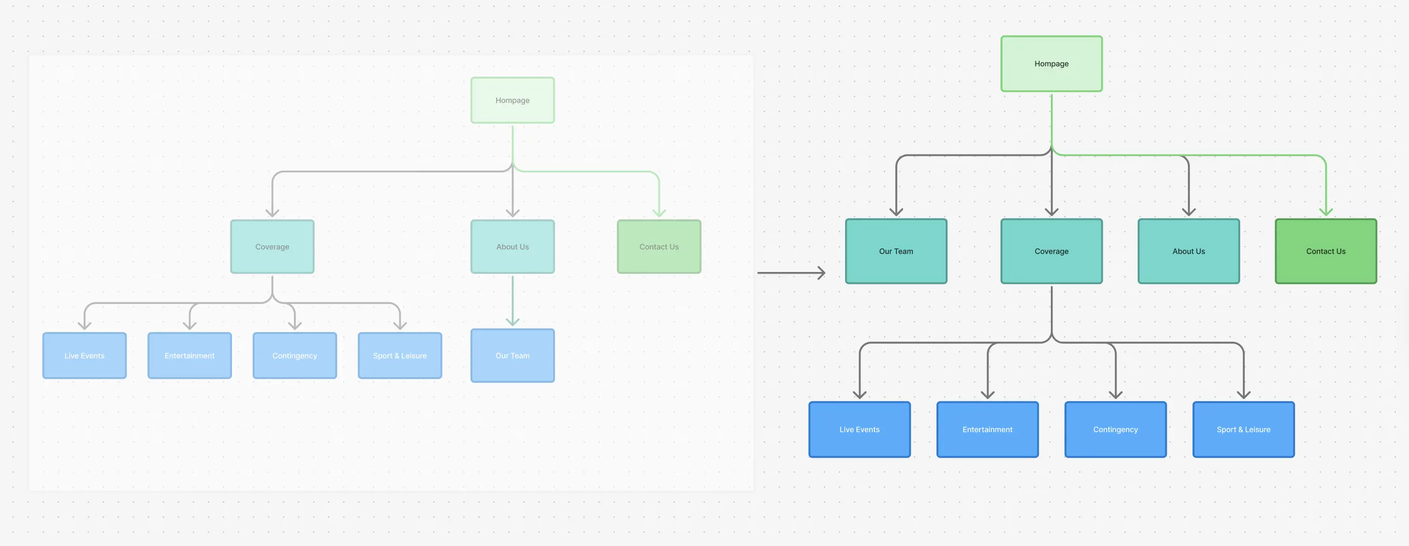 Initially, I placed the Team page under the About Us section, since this is a common pattern, but the research reminded me that in this industry, people reach out directly to individuals. So technically, the Team page isn’t secondary content; it's a conversion path. So I moved it to the top navigation to match how users actually behave.