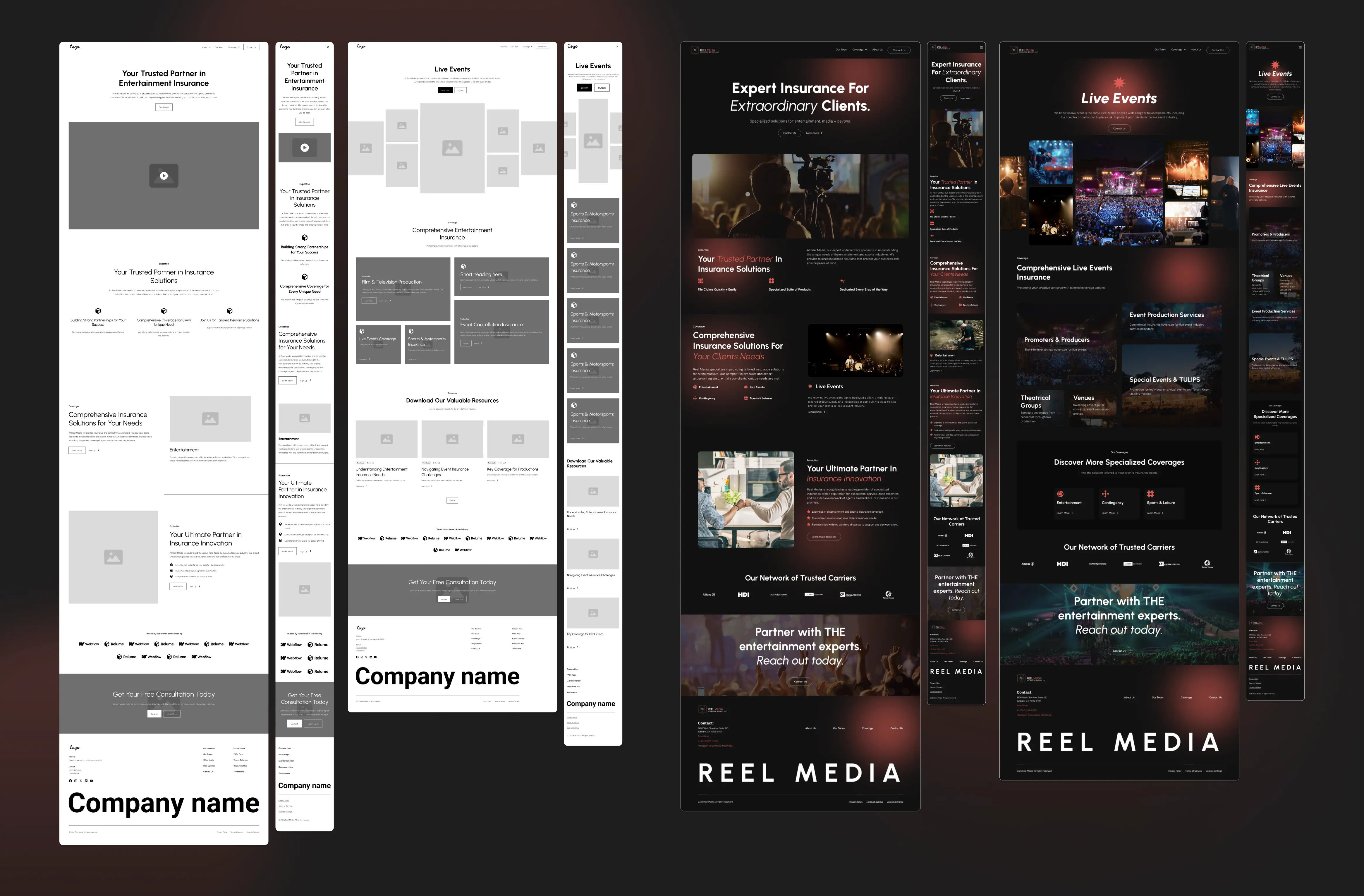 I was the lead designer on the project, handling UX strategy, visual design, and the Webflow build, working closely with a project manager. Our goal was to create a top-tier website that made complex insurance easy to understand, built trust fast, and captured the feel of the entertainment industry without looking too corporate.