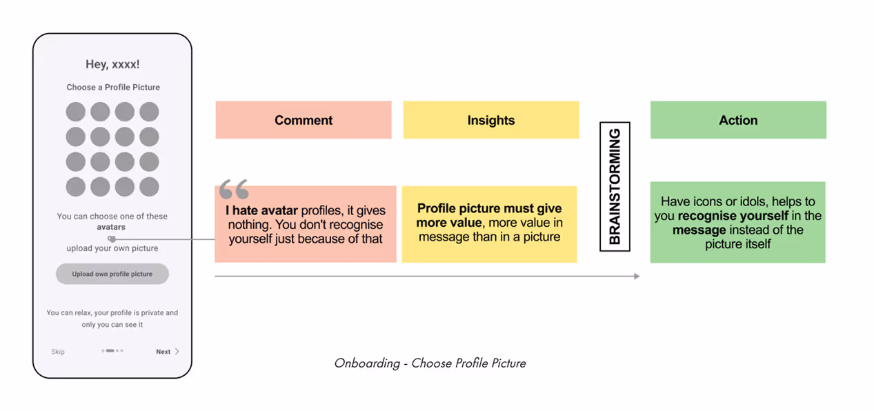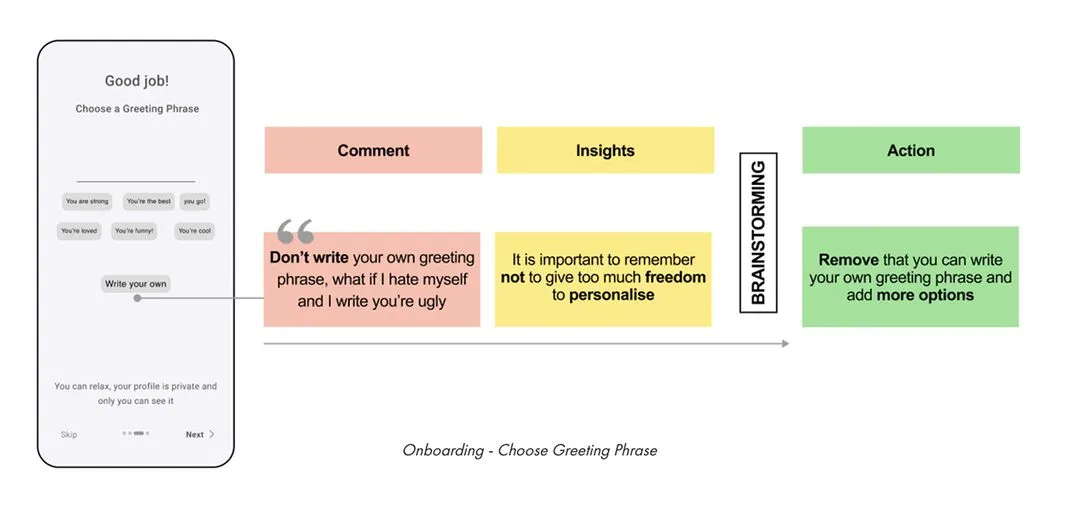 Users wanted to feel connected to others in similar situations. They needed the app to feel more interactive and alive — but there was also a risk of grooming, making safety a key concern.
