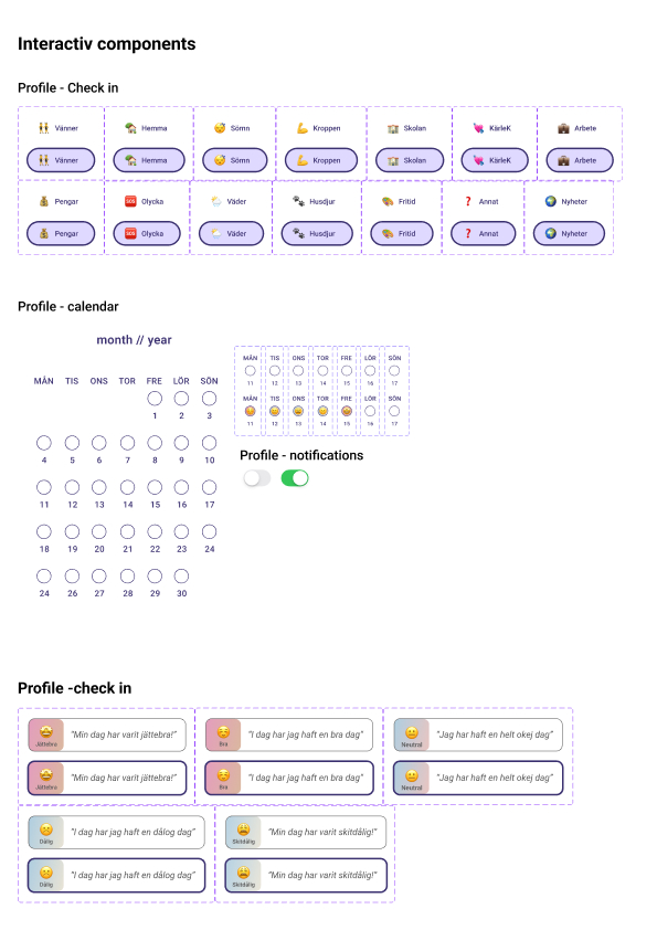 I connected the Check-in feature to the Calendar, allowing users to choose reasons for how they feel and get a quick visual overview. This makes it easier to look back, find patterns, and understand what contributes to a good or bad day.